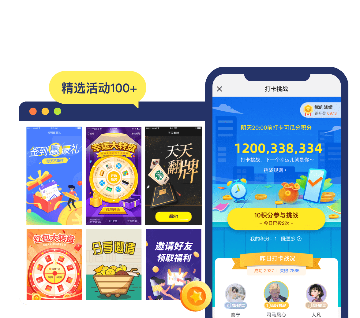 提供超100款创新营销玩法,赋能企业用户营销方案,企业可根据营销策略选择相对应的玩法组合,刺激用户活跃