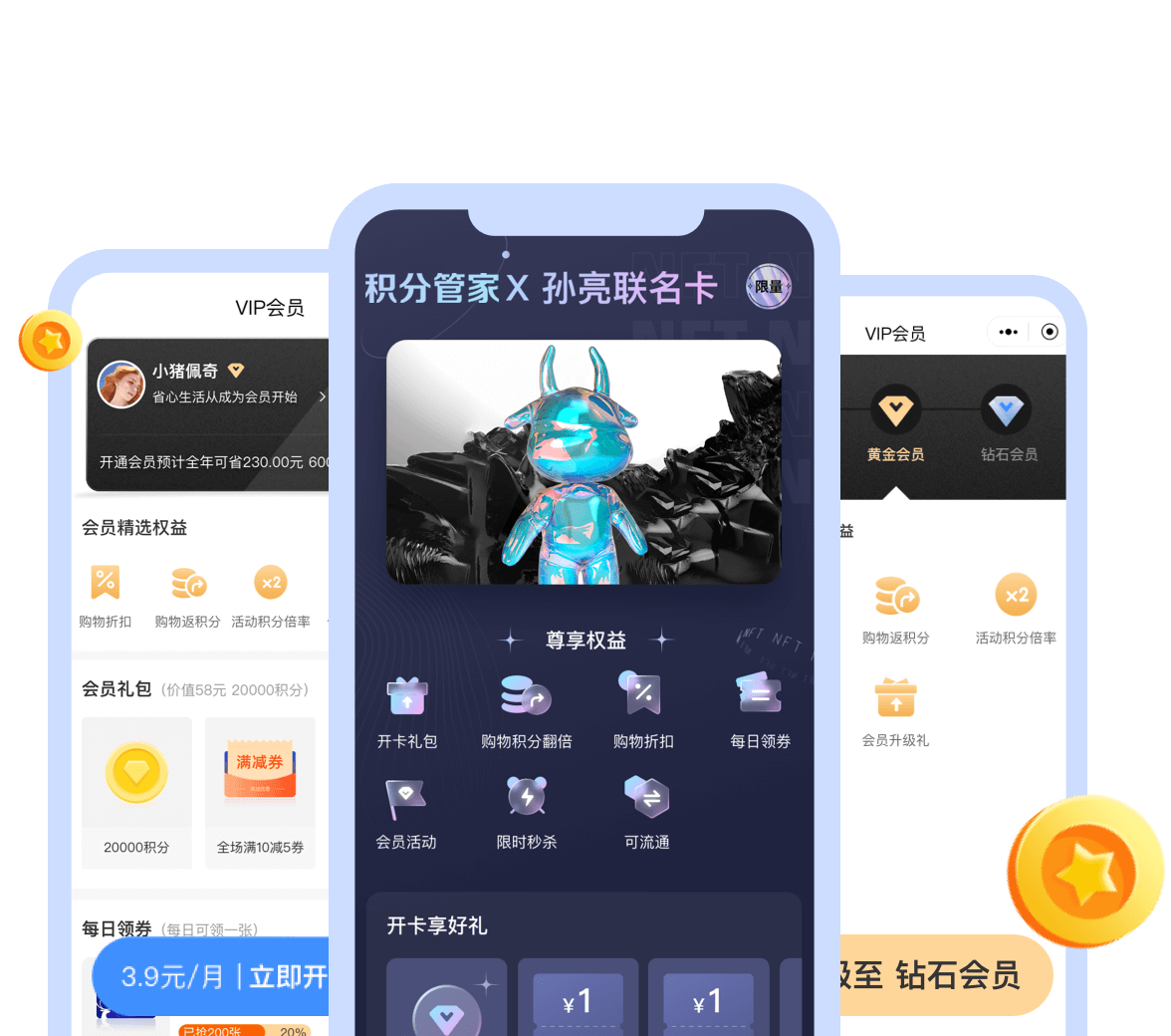 数字会员卡绑定品牌IP和权益,具备收藏流通价值,会员去留可控,不易流失